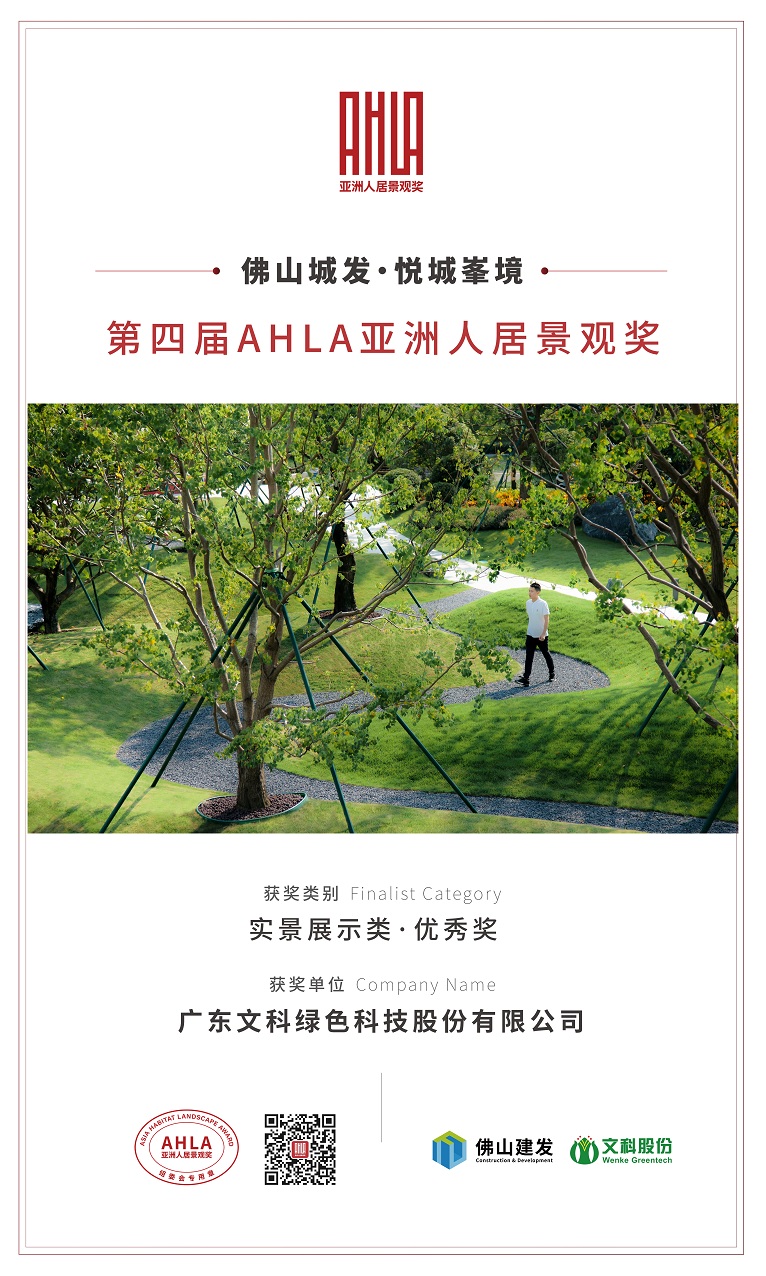 克日,第四届AHLA亚洲人居景观奖获奖名单正式揭晓。经由强烈角逐,腾博tengbo9885官网股份参赛项目“佛山城发?悦城峯境树模区”荣获实景展示类优异奖。